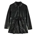 Review High Street Women Leather Coat Black Mid-length Faux Leather Jacket With Belt Punk Biker Jacket Ladies Basic Coats Loose Outwear